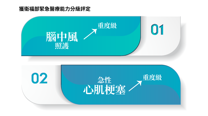 本院為南投區緊急醫療能力中度級急救責任醫院,並具備急性腦中風及急性冠心症重度級能力。