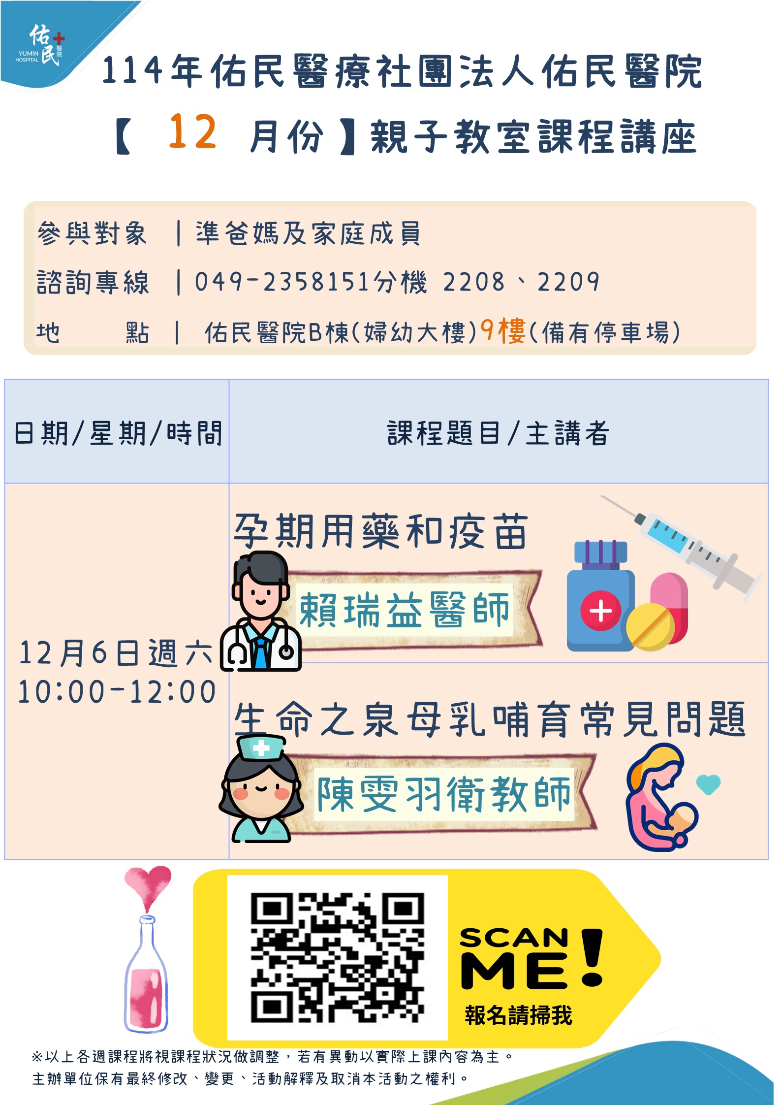 本月佑民親子教室邀請到專業醫師與衛教師,
