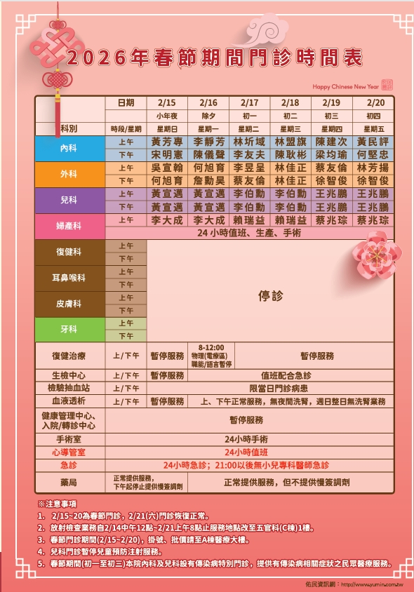 【★ 2026年佑民醫院春節期間就醫資訊公告★ 】